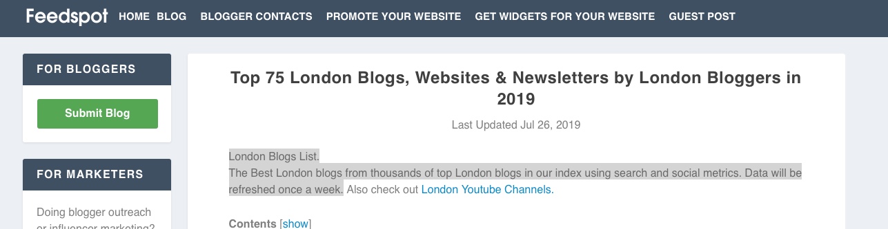 We made the Top 75 London Blogs list, for London Bloggers in 2019